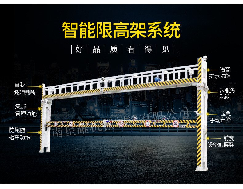 自我邏輯判斷:當車輛緩行沒有按規定時間通過,限高架自動 識別不再下降, 車輛通行完畢后可自動回位到設定高度 ;